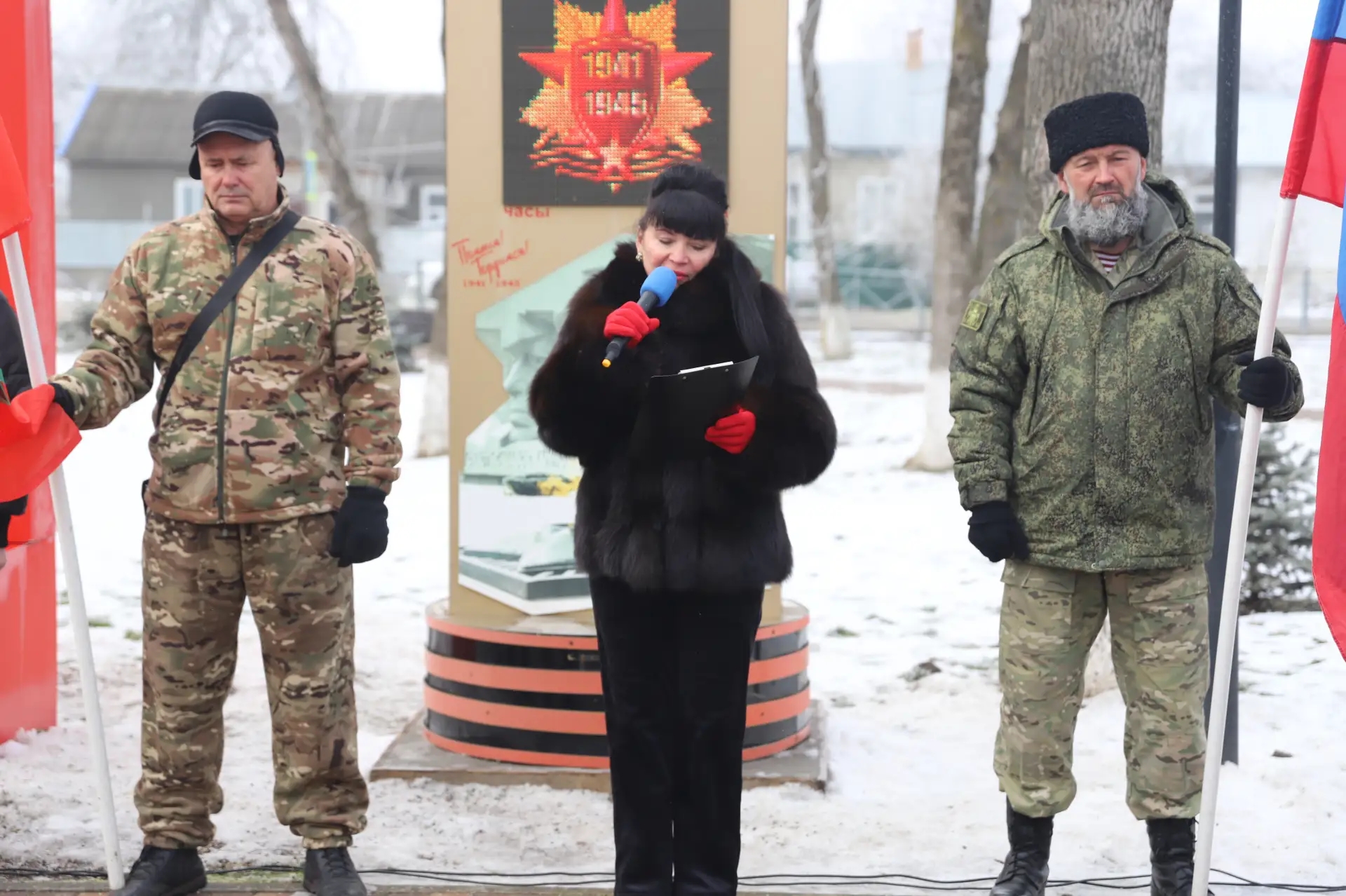 🔥О важности Победы говорили начальник управления образования, культуры и спорта И.В. Битик, руководитель местного отделения «Боевое братство» С.Л. Пудченко и председатель Совета ветеранов округа Е.В. Цысь.