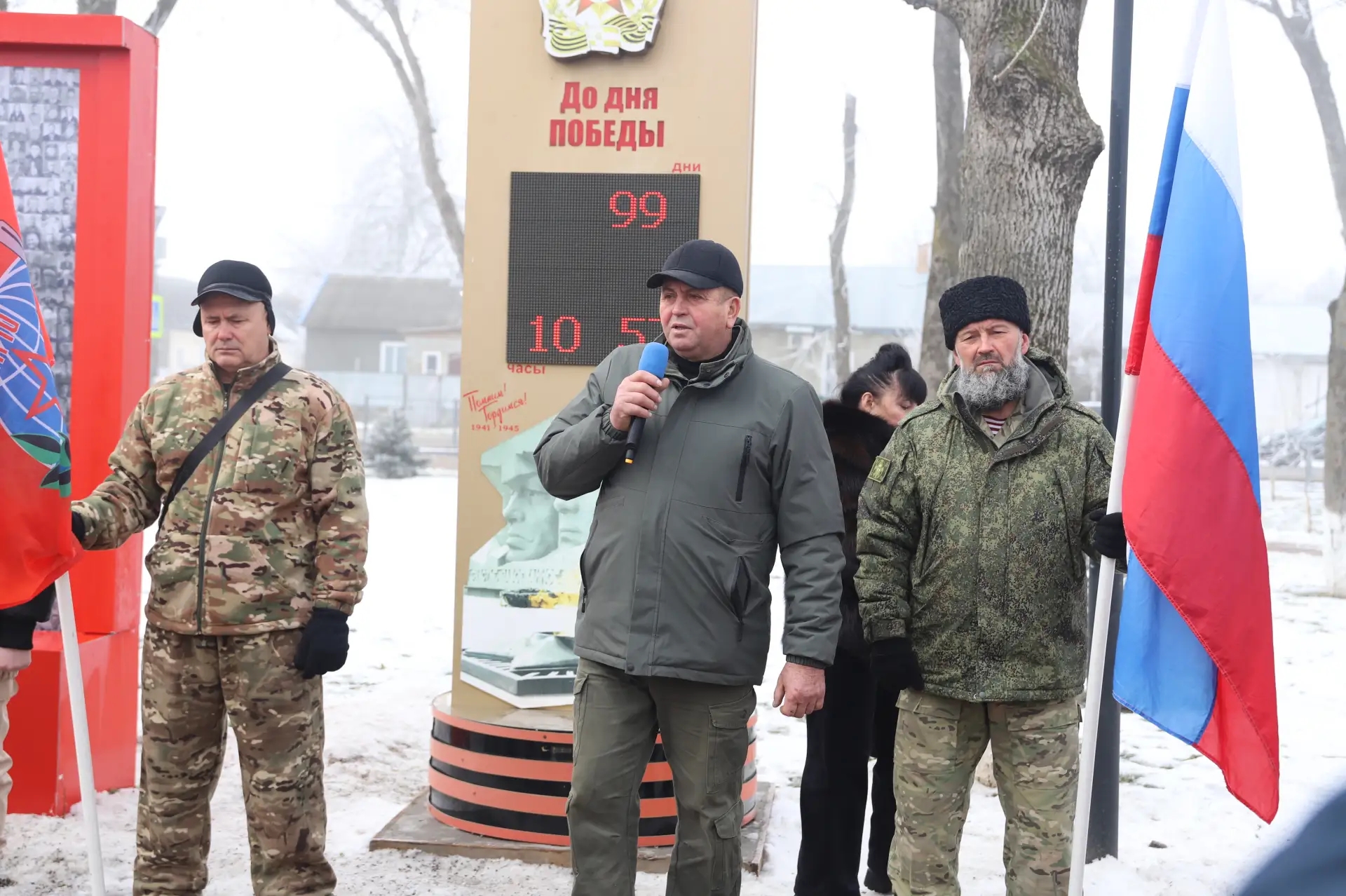🏛️На пл. Кирова рядом с панно «Поколения победителей» прошло патриотическое мероприятие «Календарь обратного отсчета – 100 дней до Победы!».
