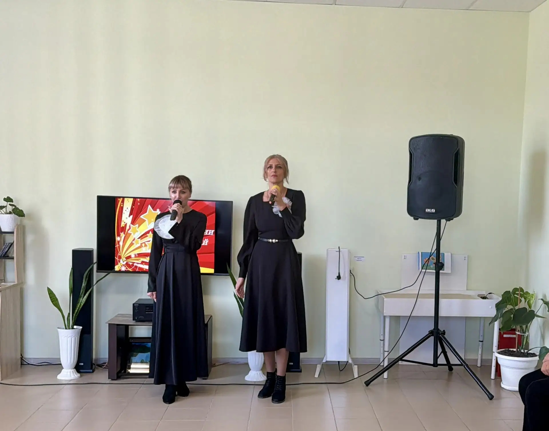 Звучали знаменитые и любимые народом песни об армии и победах в Великой Отечественной войне в исполнении участников вокальной студии «Соло» Дворца культуры им. С. М. Романько г. Новопавловска.